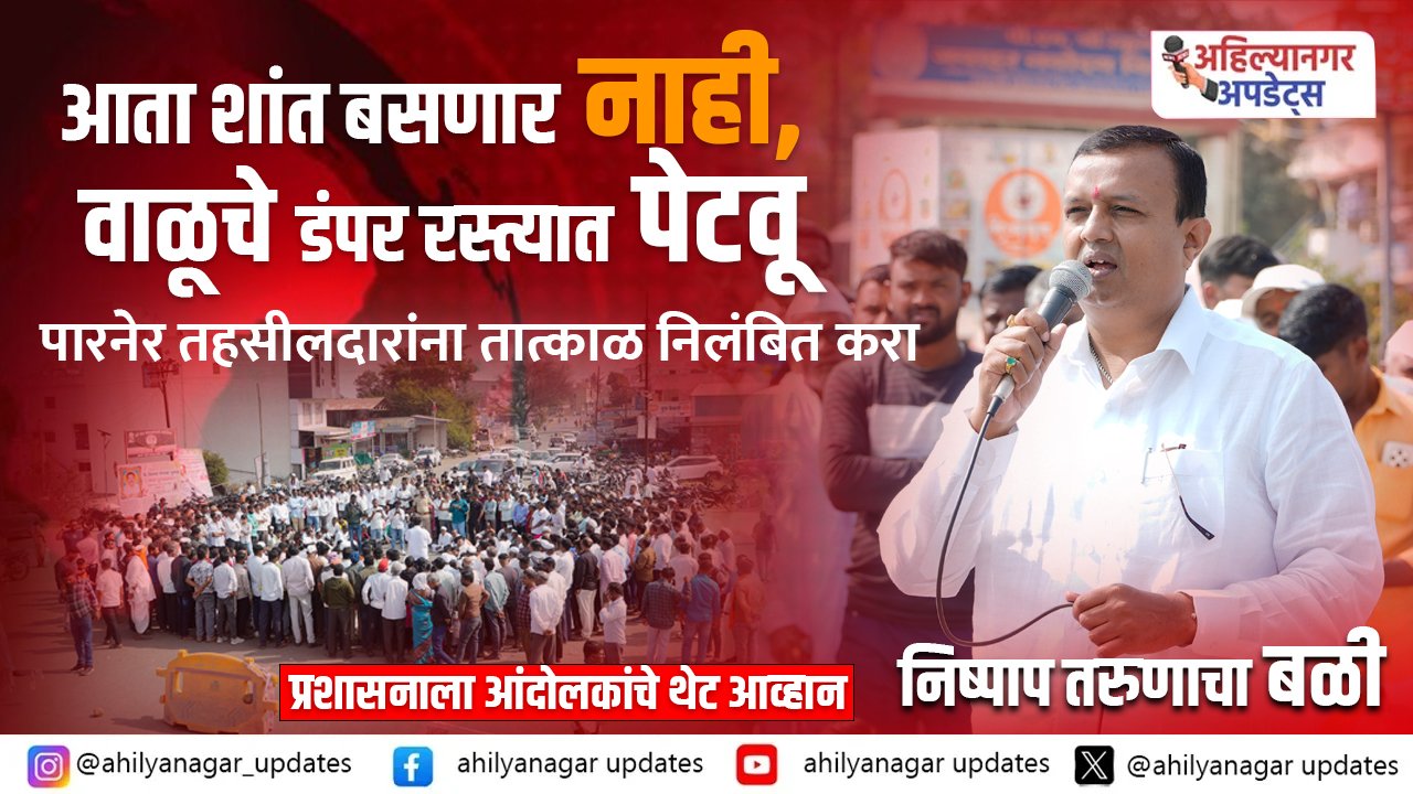 सुजित झावरे पाटील यांचा संतप्त इशारा “आता शांत बसणार नाही, वाळूचे डंपर रस्त्यात पेटवू” प्रशासनाला आंदोलकांचे थेट आव्हान पारनेर :- पारनेर तालुक्यात अवैध वाळू उत्खनन....