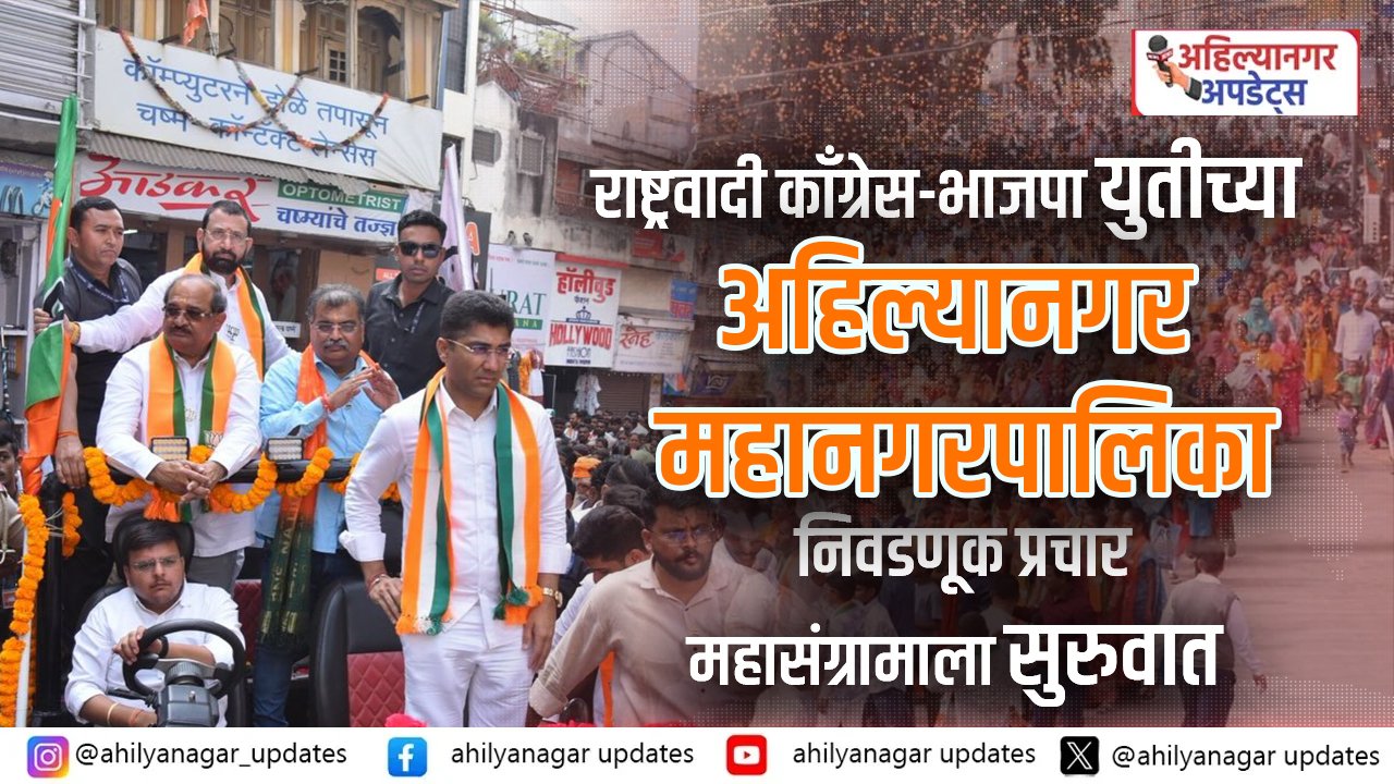 राष्ट्रवादी काँग्रेस-भाजपा युतीच्या अहिल्यानगर महानगरपालिका निवडणूक प्रचार महासंग्रामाला सुरुवात